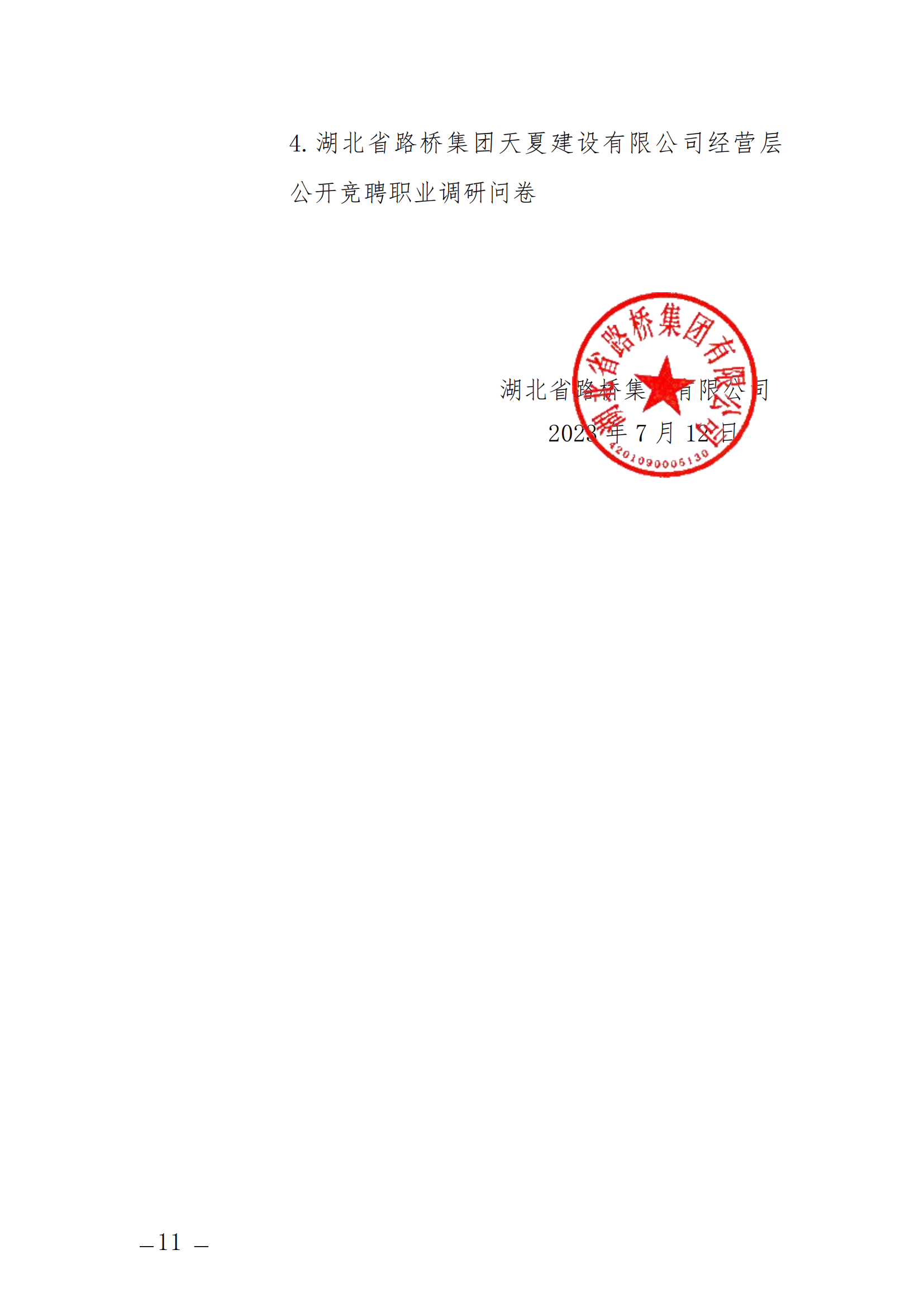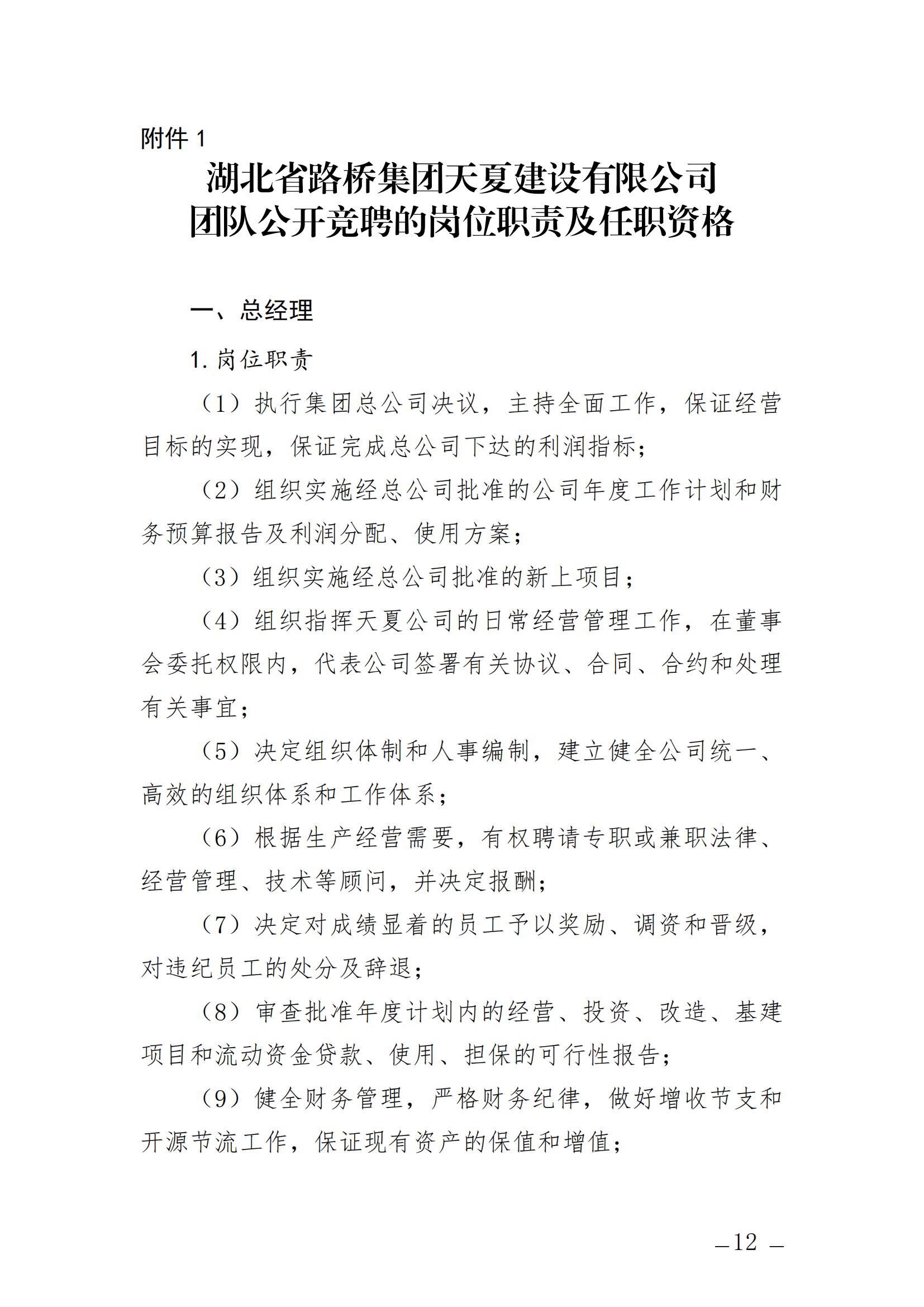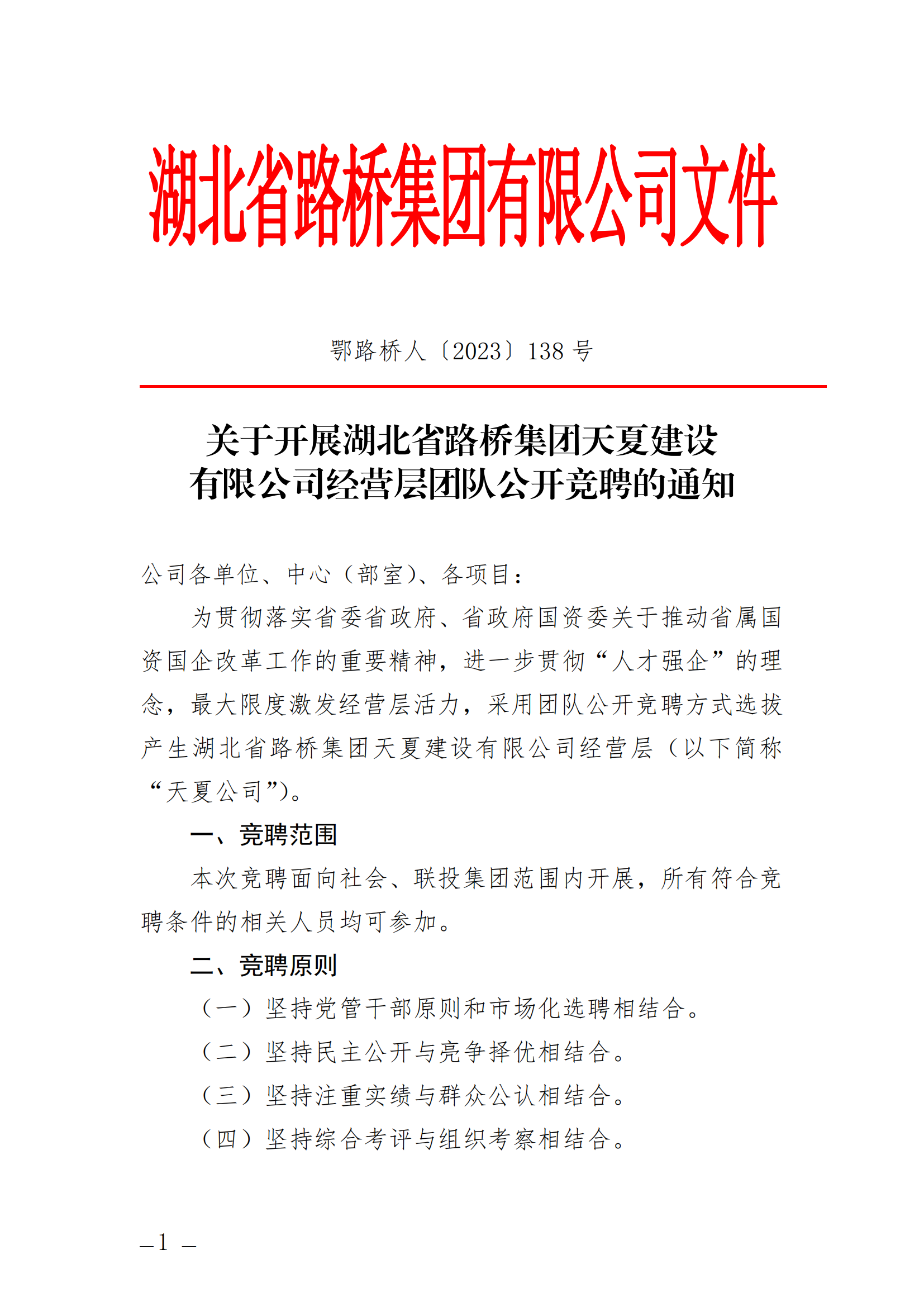 關(guān)于開展湖北省路橋集團(tuán)天夏建設(shè)有限公司經(jīng)營層團(tuán)隊(duì)公開競(jìng)聘的通知