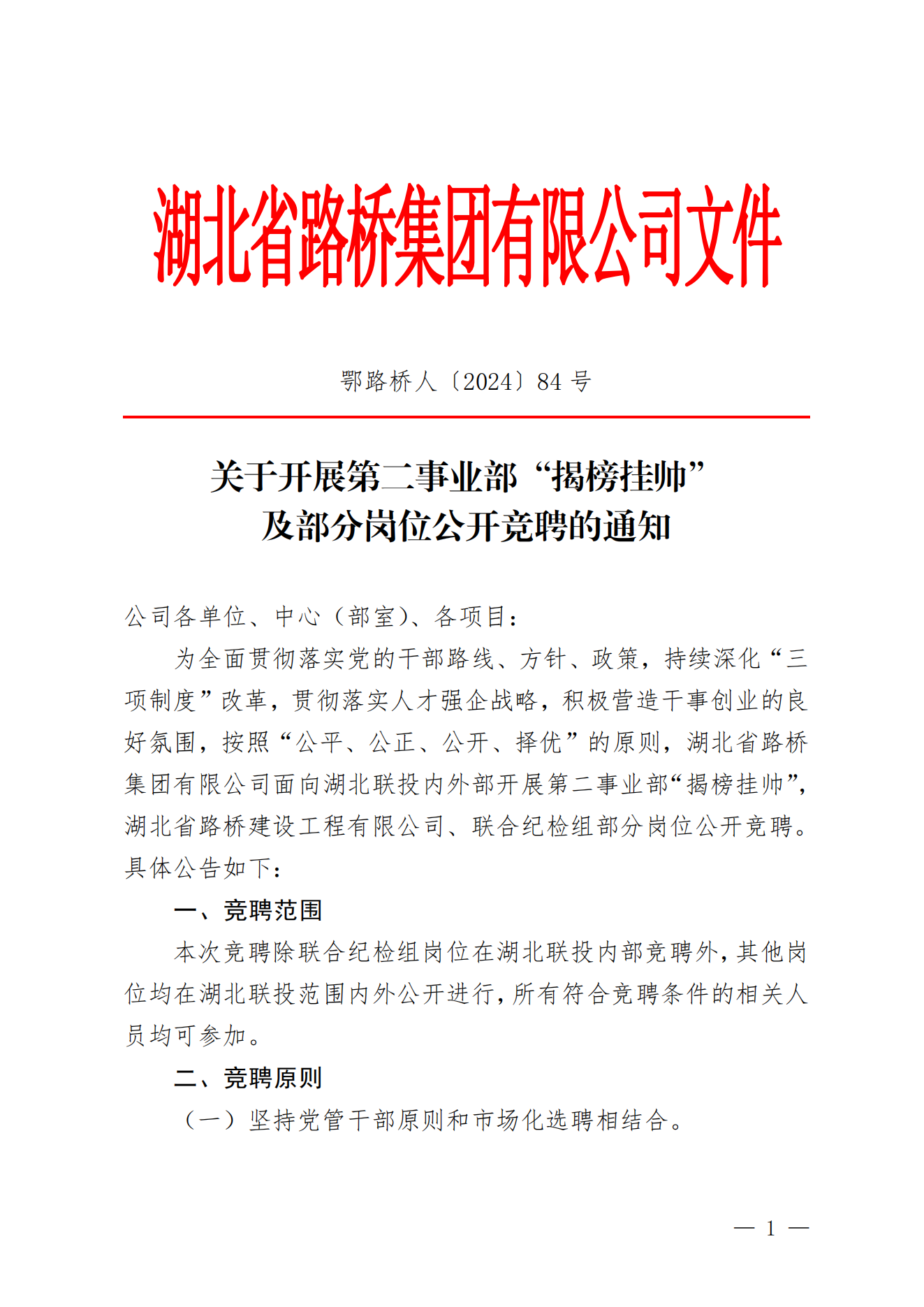 關于開展第二事業部“揭榜掛帥” 及部分崗位公開競聘的通知