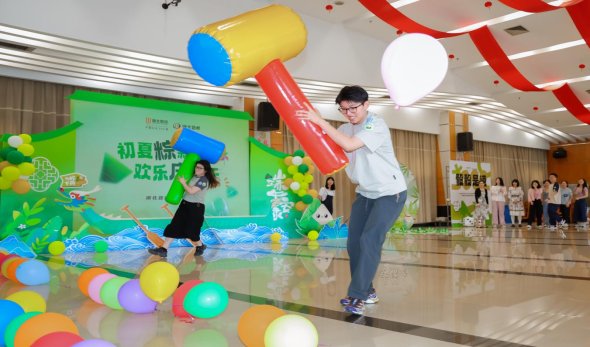 趣味游戲環節,大家積極踴躍參與,限時釣粽子、魔方比大小、“趕雞入籠”接力賽、“一錘定音”砸氣球……現場歡呼聲、吶喊聲,此起彼伏,高潮迭起。