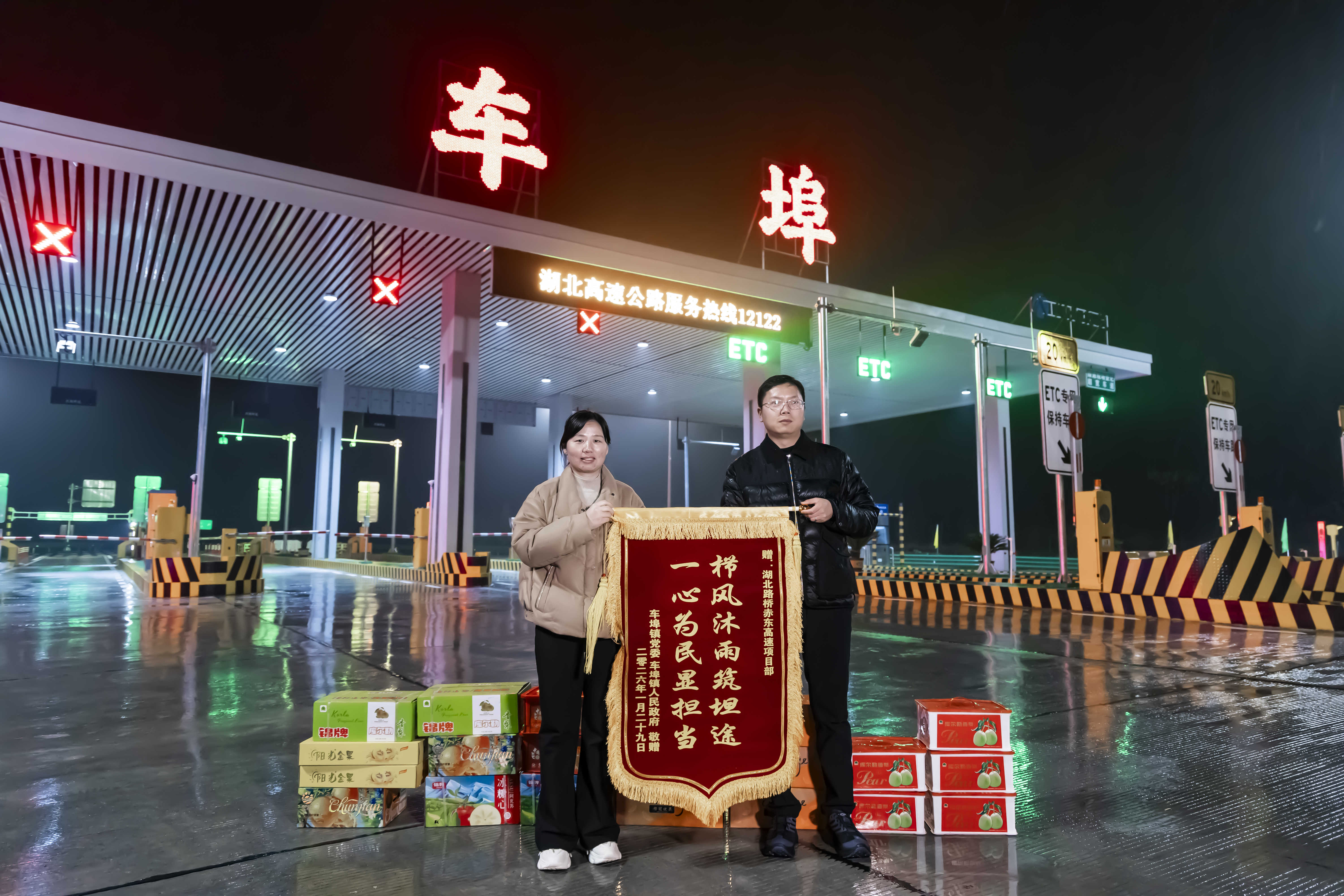 當日的通車儀式上,赤壁市赤東高速協調專班及車埠鎮人民政府向聯投湖北路橋項目團隊贈送錦旗。這份認可既是肯定也是鞭策,更是對項目團隊攻堅克難、兌現承諾的褒獎。從攻克溶洞難題到整改遺留問題,從搶工期保質量到護生態惠民生,每一步都凝聚著團隊心血,錦旗承載的不僅是信任,更是沉甸甸的責任。