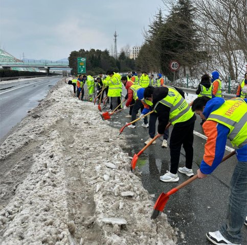 在抗冰除雪期間,項目全體員工除雪鏟冰、應急救援,全力拼搶暢通時間,累計投入融雪劑110余噸,各類除雪設備55臺次,出動300余人次,為高速暢通和行車安全保駕護航,只為不負自己的事業,不負國企的使命與擔當。